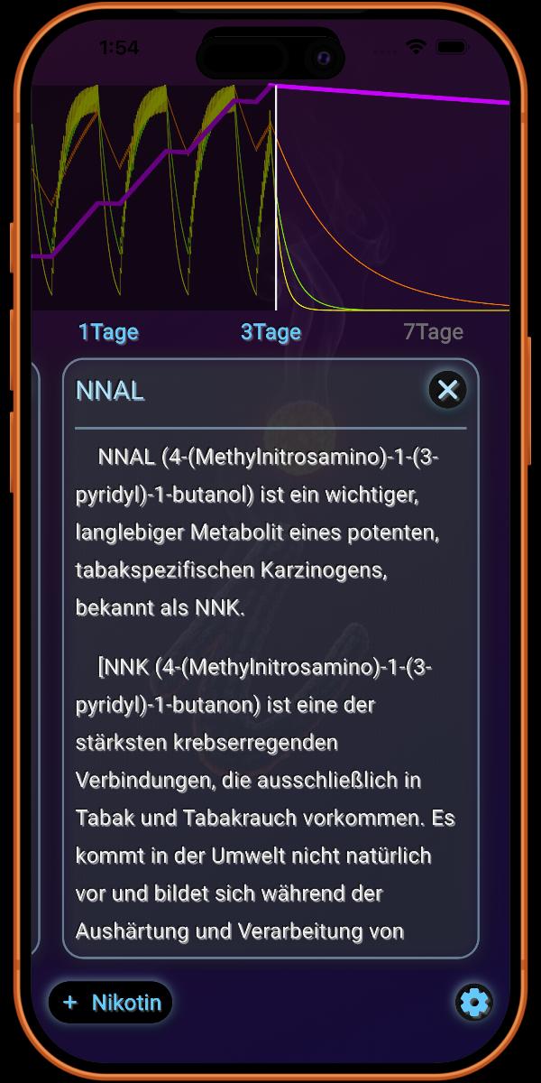 Durch die Verfolgung der anhaltenden Präsenz und der allmählichen Eliminierung von NNAL bietet Ihnen die App einen aussagekräftigen, datengestützten Beweis dafür, dass Sie die Schäden durch die schwerwiegendsten tabakspezifischen Karzinogene rückgängig machen und sich einer Zukunft nähern, in der Ihr Krebsrisiko signifikant reduziert ist.