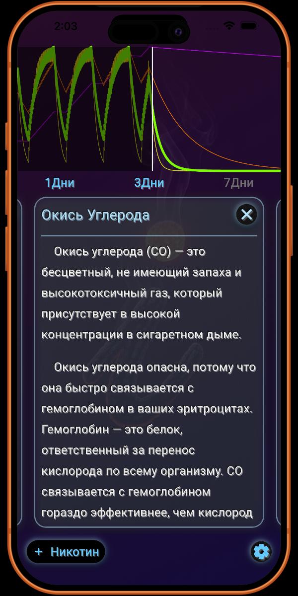 Наблюдение за нормализацией вашего уровня CO является одной из самых мгновенных и мотивирующих наград, которые предоставляет приложение, подтверждая, что вы успешно устранили серьезную угрозу для вашего сердечно-сосудистого здоровья и что ваша кровь снова способна эффективно переносить кислород.