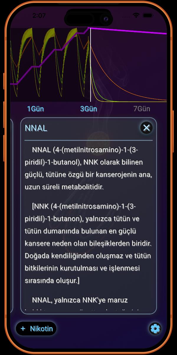 NNAL, istikrarı nedeniyle iyileşmeyi izlemenin en etkili yollarından biridir. Hızla temizlenen Nikotin ve Karbon Monoksit'in aksine, NNAL uzun bir yarı ömre sahiptir, yani bırakılmasından sonraki birkaç hafta boyunca tespit edilebilir kalır. Bu istikrar, i.Sigarayı Bırak uygulamasının orta vadede sürdürdüğünüz nikotin yoksunluğunuzun güvenilir bir ölçüsünü sağlamasına olanak tanır.