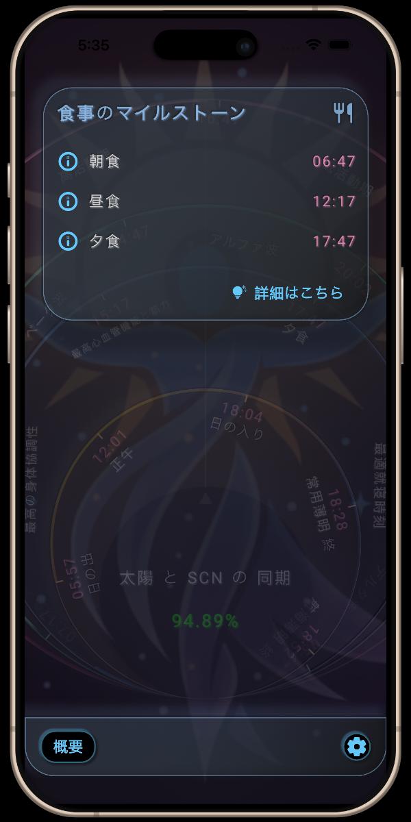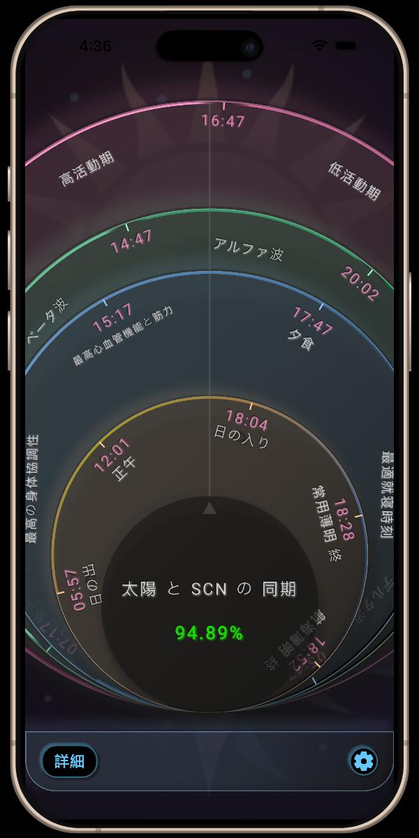 「太陽の力で自己研鑽」は、現代の「ウェルネス」トレンドの喧騒を削ぎ落とし、存在の根本的な数学、つまり光と生命の関係に焦点を当てます。体内のすべての細胞は、太陽とともに毎日変化する世界に反応するように進化してきたため、固定されたスケジュールではもはや不十分です。このシステムはGPS位置情報を使用して正確な太陽のフェーズを計算し、ダイナミックに変化するスケジュールを提供します。