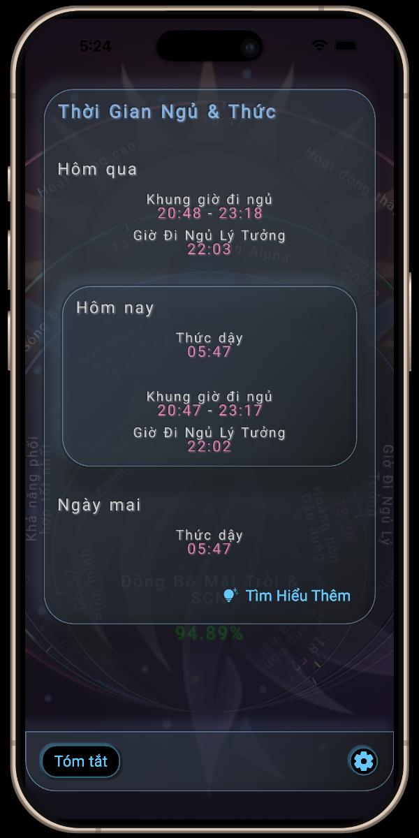 Phần này đóng vai trò là tài liệu tham khảo rõ ràng để xem các mốc thời gian ngủ và thức chính của bạn: