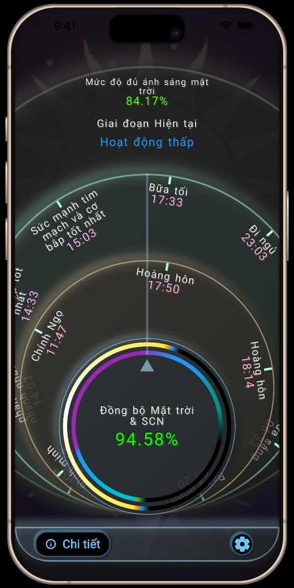 Ứng dụng của tôi là một chiếc la bàn sinh học chính xác được xây dựng dựa trên hai hằng số bất biến duy nhất trong cuộc sống của chúng ta: Chu kỳ Mặt trời (vật lý của hành tinh chúng ta) và Nhân trên chéo (SCN) (chiếc đồng hồ thần kinh sinh học nguyên thủy trong não bộ). Bằng cách loại bỏ những ồn ào từ các xu hướng "sức khỏe" hiện đại, ứng dụng của tôi tập trung vào toán học nền tảng của sự tồn tại của con người: mối quan hệ giữa ánh sáng và sự sống.